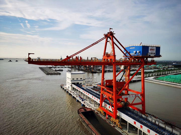 由杭州華新機(jī)電工程有限公司總包的一臺(tái)設(shè)計(jì)生產(chǎn)率為750t/h的螺旋卸船機(jī)總裝完成進(jìn)入調(diào)試階段。該設(shè)備用于國(guó)家能源集團(tuán)宿遷發(fā)電有限公司二期擴(kuò)建2×660MW超超臨界二次再熱機(jī)組工程。本工程位于宿遷市南偏東距市中心18km處的京杭大運(yùn)河南,二期新建碼頭共有4個(gè)泊位,配置兩臺(tái)螺旋式卸船機(jī)、兩臺(tái)16t清艙用港口門(mén)座機(jī)。